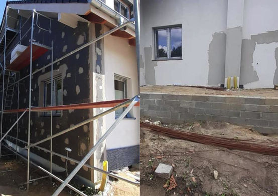 - wykończenie zewnętrzne stolarka zewnętrzna, tynki i okładziny, parapety zewnętrzne, balustrady, rynny i rury spustowe, opaski żwirowe